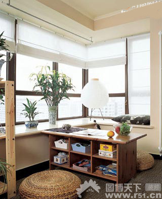 在材質(zhì)的選用上,應(yīng)減少使用人工的、反光的材料,像瓷片、條形磚等,因?yàn)檫@類材料花紋單一,枯燥乏味,還有冰冷的感覺,通常與室內(nèi)的材料格格不入。我們可以考慮選用純天然材料,讓陽臺(tái)與戶外的環(huán)境融為一體,例如未磨光的天然石,包括毛石板巖、火燒石、鵝卵石、石米等。天然石用于墻身和地面都是適合的,為了不使陽臺(tái)感覺太硬,我們還可以適當(dāng)使用一些原木,最好是選擇材質(zhì)較硬的原木板或木方,有條件的話可以用原木做地面,會(huì)有很舒適的效果。但原木地面要求架空排水,一般陽臺(tái)由于條件限制很難做到。寬敞的陽臺(tái)還可以用原木做條形長(zhǎng)凳和墻身,那將是你的理想休憩場(chǎng)所了。