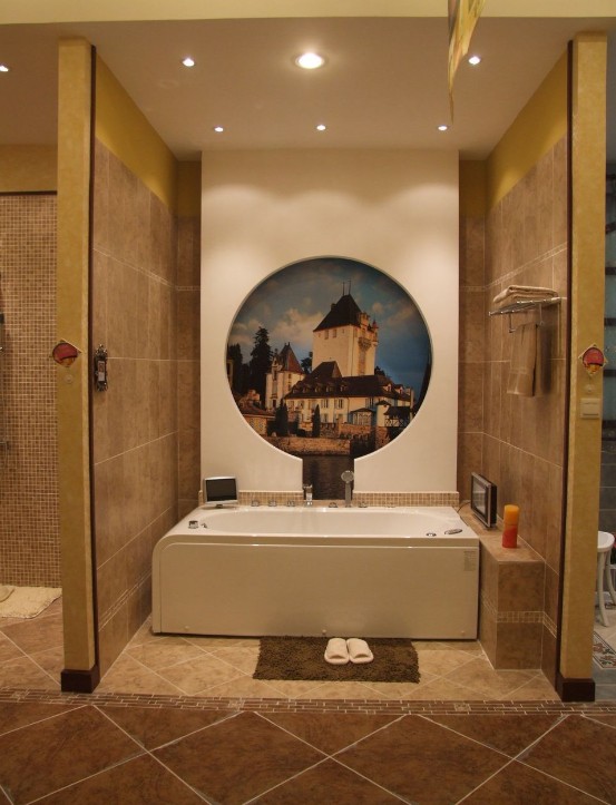 有些朋友在裝潢衛(wèi)生間的時(shí)候,喜歡在衛(wèi)生間里砌一個(gè)盆臺(tái),盆臺(tái)高出地面一兩個(gè)臺(tái)階,然后將浴盆嵌在盆臺(tái)里,說老實(shí)話,這樣的格局非常漂亮,我本人也很喜歡。但還是有一個(gè)小小的建議要給您,最好不要在臥室所套的衛(wèi)生間里采用這種格局,因?yàn)楦鶕?jù)中國傳統(tǒng)"家相學(xué)"的原理,衛(wèi)生間的地面不能高于臥室的地面,尤其是浴盆的位置不能有一種高高在上的感覺,五行學(xué)說認(rèn)為,水是向下流的,屬潤下格,長期住在被水"滋潤"的臥室里,容易發(fā)生內(nèi)分泌系統(tǒng)的疾病。如果您非常喜歡這樣的嵌入式浴盆,可以將它安置在另一間離開臥室較遠(yuǎn)的衛(wèi)生間內(nèi)。