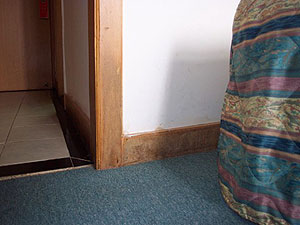 其實(shí),在行家們看來,不只是衛(wèi)生間門套要留心防潮的問題,只要是水泥砂漿做基層的木材都會有發(fā)霉的情況,這也就是為什么水泥砂漿基層一定要提前做的原因了。有些項(xiàng)目經(jīng)理為了趕工期,就讓泥工與木工交叉施工,這種做法是很不科學(xué)的,不利于水泥砂漿里面水汽的散發(fā)。一位項(xiàng)目經(jīng)理告訴記者,為了充分防潮、保證水泥砂漿里面的水分能完全蒸發(fā)出來,他們一般要等泥工做完后晾上三天左右才能做木工(主要是門套、固定家具等直接接觸墻體的木工項(xiàng)目),而冬季這個(gè)晾干時(shí)間最少7天。