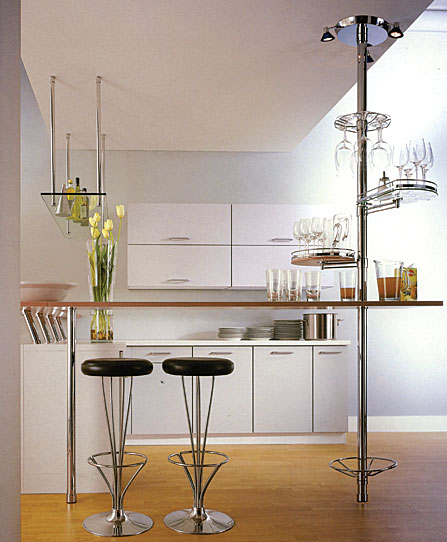 這里的廚房是她一手打造的,清一色的德國Kesseboehwev 系列。從實用美觀的多用拉籃到布滿了現代、時尚的LEMANS碟形180度轉盤,甚至到Soft Lift Fitting的板門,它的材質、它的設計靈感、它的時尚、它的美感、實用等等特質無不受到女主人的青睞。