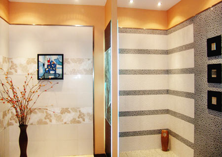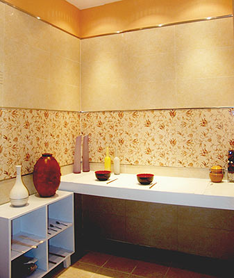 為了能更好地體現(xiàn)仿古磚的使用效果與裝飾內(nèi)格,建議墻磚采用3mm以下灰縫,地磚采用3mm以上灰縫留縫鋪貼。再則,使用恰當(dāng)顏色的填縫劑作勾縫處理更能起到畫龍點睛的作用。這種鋪貼方法把仿古磚古典而不失規(guī)整、粗獷卻柔合細(xì)致,自然但不乏新趣、溫馨中蘊含浪漫的裝飾意境表達(dá)得淋漓盡致。
