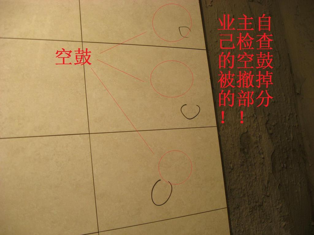 在整個衛(wèi)生間剩余的已鋪的瓷磚中所發(fā)現(xiàn)的空鼓數(shù)量超過了總數(shù)量的一半以上,達(dá)到了三十多片!!