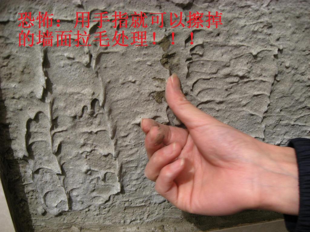 出現(xiàn)這種情況的主要是愿意是:拉毛處理時使用的水泥中摻和了大量的沙子。這種情況大家一定要加以注意!
