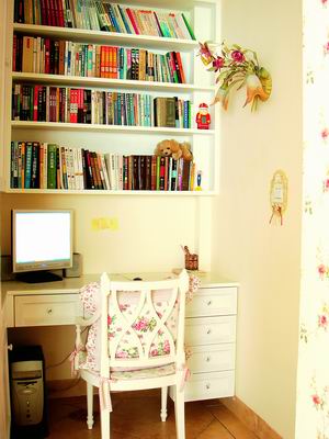小小的房子,臥室只有不到十個(gè)平米。擺下一張舒服的大床就不剩多少地方了。幸而床是臨窗擺放的,飄窗順理成章地就成為超級(jí)溫馨、超級(jí)實(shí)用的"床頭柜":可愛(ài)的小刺猬、淑女熊們?cè)谶@里安家落戶(hù);打開(kāi)窗簾一角,門(mén)外滿(mǎn)目的綠色仿佛聽(tīng)得到鳥(niǎo)叫;而早上一睜眼,正對(duì)著的掛鐘又可以讓主人不必四處找尋手表和手機(jī),便能知曉是可以繼續(xù)呼呼還是必須馬上跳起來(lái),這個(gè)時(shí)候,生活應(yīng)該還是幸福的吧?