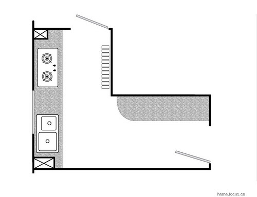 在選購(gòu)瓷磚前,一定要計(jì)算好要鋪貼瓷磚的面積,賣磚的商家都有換算的方法,一般是根據(jù)房間的面積乘一個(gè)倍數(shù)。但這樣的算法不太準(zhǔn)確,大前年裝修,戶主是在交鑰匙的前三、四天才定的廚房和客衛(wèi)的磚,并決定用清工,當(dāng)時(shí)我忙著改設(shè)計(jì)、計(jì)算輔料,根本沒(méi)時(shí)間算磚,買磚時(shí)是百安居(查看地圖)的銷售給算的,當(dāng)時(shí)就問(wèn)了廚房的平米數(shù),又乘以一個(gè)倍數(shù)得出瓷磚的用量,結(jié)果廚房快貼完時(shí)才發(fā)現(xiàn)差了不少,幸虧后來(lái)在百安居又找到了這款優(yōu)惠磚,要不還得到十里河補(bǔ)磚去,價(jià)錢還得翻上一倍。后來(lái)我發(fā)現(xiàn)這樣的算法不準(zhǔn)確,因?yàn)槟鞘莻€(gè)“L”型廚房,看圖(瓷磚計(jì)算圖一):