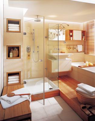 三要素定色屬于暖色系的紅、黃、橙,令人溫暖、喜悅,同時(shí)使空間感覺(jué)變小,而藍(lán)、綠等冷色系的顏色令人感覺(jué)寒冷、冷靜,使空間感覺(jué)較寬敞;另外,彩度及明度較高的色彩可塑造空間的寬敞,反之則使空間有穩(wěn)重感。除了色彩本身,照明效果就象色彩的“魔術(shù)師”,相同的顏色常因不同的光線亮度,在視覺(jué)上產(chǎn)生差異。因此,為衛(wèi)生間選擇色調(diào)前,應(yīng)綜合考慮以上三要素。