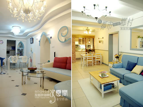 考慮到海濱大環(huán)境的因素,我給這兩家都定了帶點(diǎn)海洋風(fēng)格的“藍(lán)調(diào)”,在不變動(dòng)戶型結(jié)構(gòu)的前提下;一個(gè)用柔美曲線來表現(xiàn)其嫵媚和流動(dòng);一個(gè)用硬朗的直線條展示粗放和閑適。通過不同風(fēng)格的硬軟裝飾元素加以區(qū)分,家具、燈具、窗簾等元素則是走向兩個(gè)極端,于是便有了這兩個(gè)同一個(gè)“模子”做出來的不同風(fēng)格的作品。當(dāng)然,這兩家人也私下偷偷問我比較滿意哪家,答案!!當(dāng)然是誰問我我就喜歡誰家...