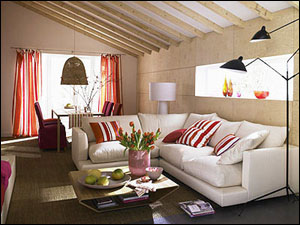 但經(jīng)過(guò)裝飾,我們發(fā)現(xiàn)其實(shí)這樣的房型也蠻可愛(ài)的??臻g私密,很適合兩口之家。為了將尖頂臥室調(diào)亮光線,我們將墻壁刷成大面積的粉紅色,床單靠枕都換成大紅色,屋內(nèi)的氣氛頓時(shí)變得溫馨起來(lái)。由于天窗通風(fēng)效果好,我們利用這個(gè)優(yōu)點(diǎn),在衣柜上索性采取了無(wú)門(mén)設(shè)計(jì),以布簾替代,拿取衣服方便,也讓臥室顯得輕巧許多。房頂中央吊上一盞梭形紙燈,柔和的光線很適合臥室的曖昧情調(diào)。至于尖角落,我們利用那丁點(diǎn)空間做出一排暖氣片,位置高度恰到好處。能直接烘曬我們的小衣服,美觀又實(shí)用。天窗雖小,但裝上百葉窗后,顯得精致了許多??傮w感覺(jué),不規(guī)則的臥室,裝飾比規(guī)矩的臥室更簡(jiǎn)單,而且容易展現(xiàn)小情調(diào)。