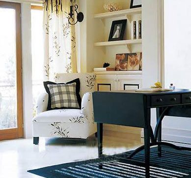 色彩是一種有明顯效果的裝飾手段,不同的色彩賦予人不同的距離、溫度和重量感。比如紅、黃、橙等暖色,給人一種凸起的感覺;而藍(lán)、青、綠等冷色,則給人一種景物后退的感覺。實(shí)際上,距離并沒有變,只是色彩給人們的眼睛造成了一種錯(cuò)覺。利用色彩的這個(gè)特點(diǎn),比較小的房間就應(yīng)該用亮度高的淡色作為主要色調(diào),比如淡藍(lán)或淺綠等。這樣的色彩使空間顯得開闊、明快。另外,地可以使用中性的淺冷色來改變窄小空間的緊迫感。如果房間不但小而且低矮,那就應(yīng)該用遠(yuǎn)感色,即把天花板和墻面涂成同一淺冷色,這同樣能取得空間開闊的效果。如果是長方形的房間,相距比較近的兩面墻壁,一面涂以白色或其它淡顏色,另一面涂以深于前者的同種色調(diào)。這樣深、淺色調(diào)的對比,可以產(chǎn)生拉長兩墻之間距離的效果。另外,沙發(fā)套、床單、桌布等如果選用與墻壁顏色相同或相似的顏色,這種單調(diào)的配色也能使室內(nèi)空間產(chǎn)生沿各個(gè)方面擴(kuò)大的視覺。