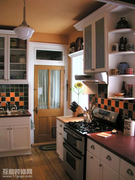 一般來說,鄉(xiāng)村風(fēng)情的廚房中墻面仍然以瓷磚為主,不過可以選擇一些花紋突出的方磚來體現(xiàn)鄉(xiāng)土氣息,另外地磚也要走仿古路線,時下非常流行的仿古方磚就是不錯的選擇,這種磚以西班牙和意大利瓷磚為代表。當(dāng)然最簡單的方式也可以只是刷上油漆,感覺上更純粹。