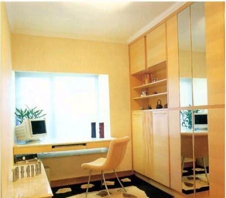 書房的家具除了要有書櫥、書桌、椅子外,兼會(huì)客用的書房還可配備沙發(fā)茶幾等。書櫥應(yīng)靠近書桌以便存取方便,書櫥中可留出一些空格來放置一些工藝品以活躍書房的氣氛,書桌應(yīng)置于窗前或窗戶右側(cè),以保證看書、工作時(shí)有足夠的光線,并可避免在桌面上留下陰影。書桌上的臺(tái)燈應(yīng)靈活、可調(diào),以確保光線的角度、亮度,還可適當(dāng)布置一些盆景、字畫以體現(xiàn)書房的文化氛圍。