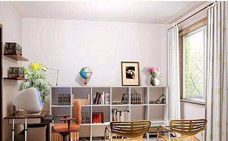 面積充裕的居室中,可以獨(dú)立布置一間書房,面積較小的居室可以辟出一個(gè)區(qū)域作為學(xué)習(xí)和工作的地方,可用書櫥隔斷,也可用柜子、布幔等隔開。