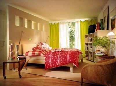 臥室環(huán)境色彩可以是高調(diào)的暖色系列,也可以是高調(diào)的冷色系列,反之亦然。比如天花和墻面為白色,墻裙為米色,地面為駝色或深黃色。家具為明亮的木本色,床單、臺(tái)布、窗簾等織物為淡黃色,這就造成了一種高明度的暖色調(diào)子。天花、墻面用極淡的藕荷色,室內(nèi)織物選擇沉著一些的紫色或綠色,家具用米色或白色,地面用灰色,這種清雅的空間色彩,形成了一種高明度的冷靜氣氛。高調(diào)的臥室適合兒童,而低調(diào)的臥室則比較適合老人。