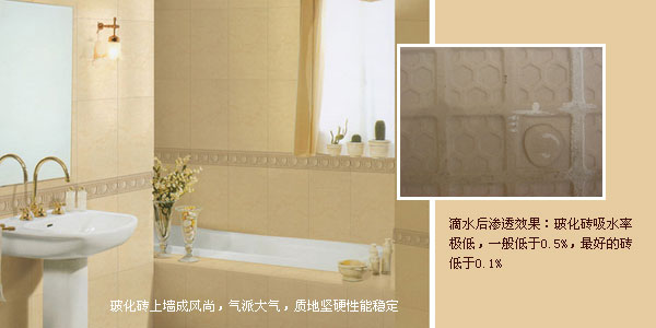 釉面磚顧名思義就是表面經(jīng)過燒釉處理的磚。之所以說它是瓷磚中的戰(zhàn)斗磚,是因為價格實惠,它是目前家庭裝修中使用最多的墻地磚。釉面磚有兩種:一是用陶胚燒制的,另一種是用瓷胚燒制的。瓷的比陶的好,價格也稍貴些。簡單區(qū)別看背面即可,陶胚的背面是紅褐色的,而瓷是灰白色的,理論上說胚子越淺越好。陶制的只能用做墻磚,而瓷的則可用作墻磚也可用于地磚。釉面磚質(zhì)地酥松所以吸水率高,容易滲透方便掛墻;釉面墻墻磚萬萬不可以混用作為地磚,這點請各位籬笆同學(xué)注意啊,不然到時候地面斑斑駁駁可追悔莫及。