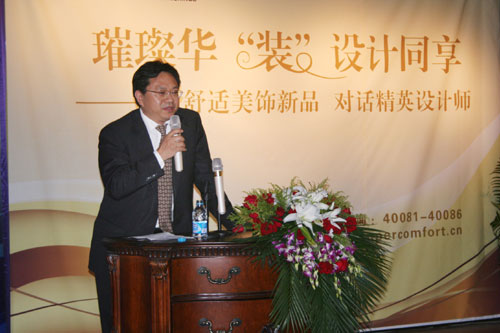概要: 2009年9月18日,“璀璨華‘裝’設(shè)計(jì)同享——超舒適美飾新品對(duì)話精英設(shè)計(jì)師”活動(dòng)暨美飾新品發(fā)布會(huì),于馬甸橋東燕莎盛世大廈三層——超舒適國(guó)際家居中國(guó)區(qū)總部舉行。