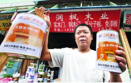 概要: “開始還以為是感冒呢,但嗓子像是扯掉一層皮一樣,又痛又癢。”新房還沒裝修好,55歲的老教師閆繼民居然中了毒。醫(yī)院診斷結(jié)果為多氯苯混合物、甲醛過(guò)敏中毒引起的過(guò)敏性哮喘。而罪魁禍?zhǔn)渍菑牟牧鲜袌?chǎng)買來(lái)的8組“立邦美家居”牌的木器漆?! ¢Z先生用的“山寨立邦漆”就是從這個(gè)店買來(lái)的聽信包工頭買來(lái)山寨漆為給兩套新房裝修,經(jīng)熟人介紹,閆繼民認(rèn)識(shí)了包工頭楊某。