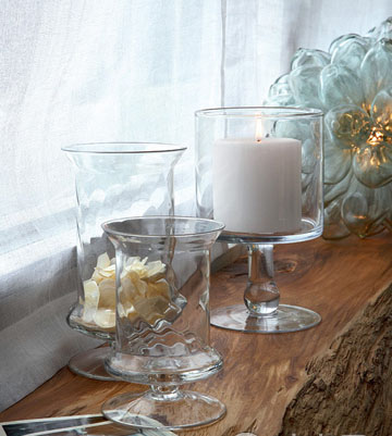 窗邊歷來都是裝飾的絕佳角落,自然光線的照射使得一切都顯得那么生機勃勃。一段經(jīng)過處理后的木質(zhì)臺面,呈現(xiàn)出樹木的年輪與自然斷層,在這樣具有原生態(tài)美感的臺面上擺放一兩只玻璃燭杯,增加了些許典雅的韻味。