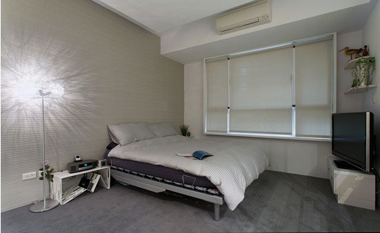 低彩度的色系安排,承襲公共空間的規(guī)劃,主墻以立體馬賽克的紋理,軟化了空間的冷冽意象。