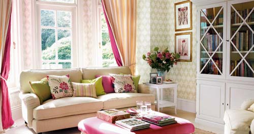 為平淡的空間加入一至兩種主題色彩,能迅速獲得驚艷的效果。有了顏色作為裝飾主線,無(wú)需再加入過(guò)多的配飾。如果房間里的輔助色彩用于墻面等大面積裝飾,那么主題顏色的使用面積就要相對(duì)小些。比如這里的粉色沙發(fā)凳,還有雙面窗簾中隱約出現(xiàn)的粉色。總之,主題色不能超過(guò)整體色調(diào)的10%。用靠包、鮮花等與主題色相呼應(yīng),令空間造型更顯完整和專業(yè)。