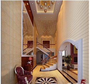 6、如果是復(fù)式的房子,一樓大廳的地板可以采用石材進(jìn)行鋪設(shè),這樣會(huì)顯得大氣。如果是普通居室,客廳與餐廳最好還是鋪設(shè)木質(zhì)地板,若部分用地板,部分用地磚,房間反而顯得狹小。