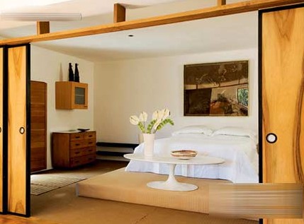 這是一間極具意大利風(fēng)情的小屋,其屋主和設(shè)計(jì)師是一來自英國(guó),名為MichaelPlayford的20世紀(jì)古董家具收藏家。因?yàn)樗惺詹胤侵藓腿毡竟哦呐d趣,其家居都滲入了絲絲的日式室內(nèi)設(shè)計(jì)風(fēng)格??蛷d安裝了日式的兩開木趟門,能分隔開生活間和睡房的空間,趟門關(guān)上的時(shí)候讓室內(nèi)帶有一種日式的典雅、莊嚴(yán)和寧靜;一打開門,就能展現(xiàn)出睡房那寬闊的空間,和屋主的珍藏品,既能用來招呼賓客,更是一個(gè)簡(jiǎn)單的古董家具展廳。