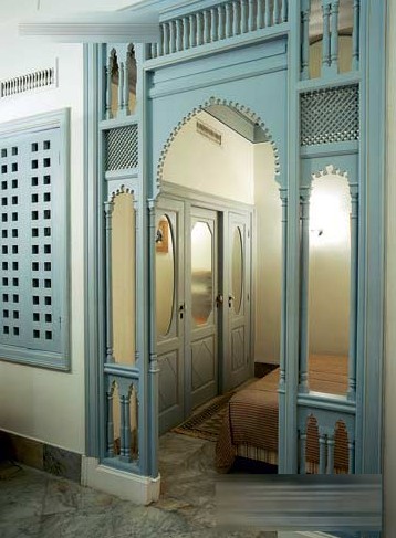 這一扇充滿獨(dú)特北非風(fēng)情味道的“門”位于北非突尼西亞,一間改建自Sidi-Boud-Said酒店的屋子內(nèi)。說這是一扇門,大家可能不會(huì)太認(rèn)同(因?yàn)闆]有門板和門鎖),但是這扇配合了拱門風(fēng)格的灰藍(lán)色門巧妙地將兩個(gè)不同的空間分割,讓睡房被分隔開來,營(yíng)造出睡房寧靜祥和的感覺。門本身手工細(xì)致,制作者在木上刻畫出充滿了突尼西亞的風(fēng)情,沒有門板,更多陽光就能透進(jìn)睡房?jī)?nèi),配上白色和米黃色的墻身及云石地板,顯露出一派低調(diào)的高貴典雅。