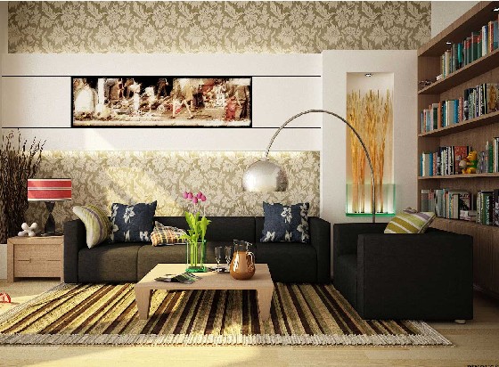 2.色彩與光線—色彩和照明的布局是反映主人藝術(shù)審美和個性特點的主要手段??傮w來說,應將客廳裝飾成為大方得體、接待親朋好友的理想場所。因此,若你對客廳顏色沒有較大把握,那么運用統(tǒng)一的淡色調(diào)會是一個比較理想的辦法,即整體采用同一色調(diào),然后用軟裝飾進行色彩點綴,這會產(chǎn)生你意想不到的效果。另外個功能區(qū)域色彩與照明的運用也要有自己的特點,就餐區(qū)采用暖色,以利于增加食欲,并能營造溫馨的氣氛;會客區(qū)采用整體的基調(diào)色,但在軟裝的布置上可富于變化,營造熱情待客的氣氛;學習區(qū)則要保證光賢得透亮,采用冷色以減輕學習的疲勞感,另外不要有過多的累贅裝飾品,以便學習者集中注意力。客廳區(qū)域的整體照明應以敞亮為基本要求。白天的客廳以自然采光的為主,盡量能將自然光線引入室內(nèi);晚間則以人工照明為主包括裝飾性吊燈照明、吸頂燈具、嵌入式燈與壁等混合照明等,但保證居室的敞亮仍然是選擇燈具的第一目標。