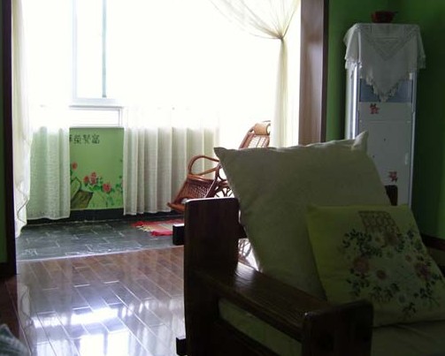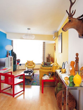 直接在松木地板上刷清漆后呈現(xiàn)的顏色略帶黃色調(diào),墻壁就運用“相鄰顏色”的法則,可挑選與黃色相鄰的綠色、淡黃和淺綠的搭配,再加上幾件墨綠色的家具,用百葉窗擋住屋外刺眼的陽光,屋內(nèi)一片柔和,是和朋友們輕松愉快地暢談的好處所!