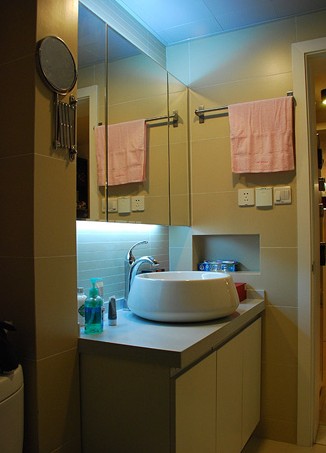 用不銹鋼制造出的另類馬賽克,在衛(wèi)浴間里營造冰冷前衛(wèi)的空間效果,在視覺上給人以沖擊,更賦予空間全新的立體感。不銹鋼表面效果分亮光和拉絲兩種,亮光不銹鋼顯得張揚(yáng)冷酷,拉絲不銹鋼的效果要柔和一些。