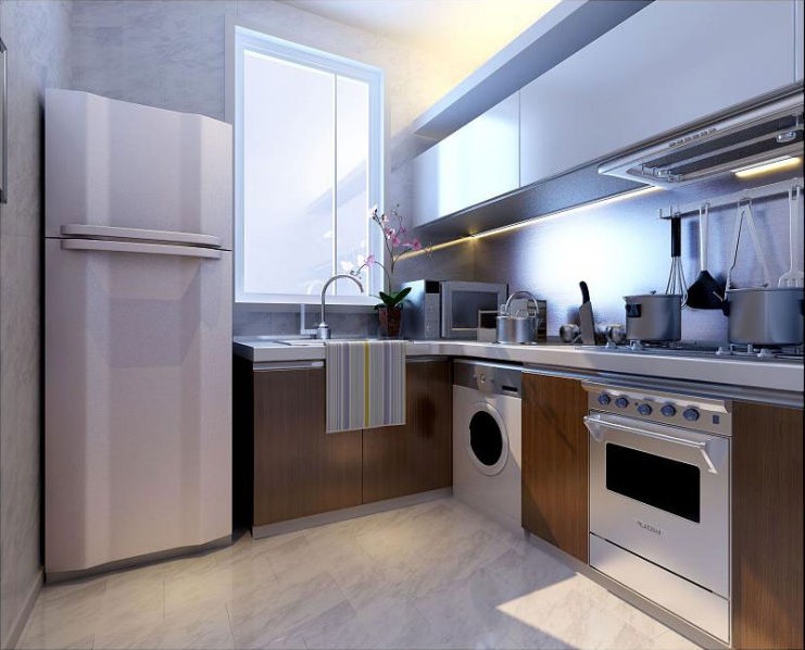 廚房中并沒(méi)有太多的中式元素,整個(gè)風(fēng)格比較簡(jiǎn)約現(xiàn)代