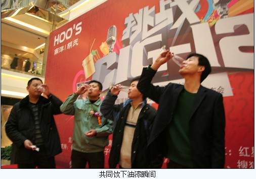 在有請現(xiàn)場觀眾當(dāng)場驗證了油漆的真實性后,日本玄華有期駐中國辦事處工程師劉有來先生等四名在場人士接過活動主辦方送來的“飲品”,在向觀眾舉杯示意后,一飲而盡。四人飲過后均表示沒有身體沒有任何不適,其中一名男士更是表示,“滑滑的,味道還不錯!”引得在場觀眾目瞪口呆,繼而掌聲不斷,整個發(fā)布會現(xiàn)場氣氛達到了最高潮。