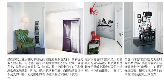 整體效果:充滿趣味效果的壁紙總是能讓你在恍然大悟之后,報(bào)以會(huì)心的一笑,它們可以出現(xiàn)在你不經(jīng)意的每個(gè)空間,在你沒有發(fā)現(xiàn)的時(shí)候,根本體會(huì)不到它的特別,一旦被你識破了其中的端倪,壁紙的趣味必然會(huì)被你樂意拿來炫耀,一扇虛掩著的大門,真的走向它你才會(huì)發(fā)現(xiàn),這是一張鋪滿了壁紙的墻壁,壁紙逼真的效果令所有人驚訝,想要讓壁紙的趣味性發(fā)揮到極致,一定要在家具和色彩上與壁紙統(tǒng)一,才能達(dá)到配合壁紙的最佳效果,或者把家具精簡到少之又少,令所有的焦點(diǎn)都集中在壁紙,以凸現(xiàn)壁紙的趣味設(shè)計(jì)。