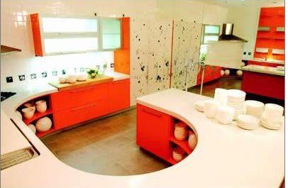 U型櫥柜的打造方式是國(guó)外比較流行的櫥柜模式,以它為基礎(chǔ)打造出的廚房對(duì)于活動(dòng)區(qū)域的要求很高而且要求有很大的面積,一般情況下,U形櫥柜應(yīng)該遵循三個(gè)原理。U形櫥柜實(shí)例打造首先實(shí)現(xiàn)了分區(qū)處理,另外將廚房各個(gè)不同功能都依據(jù)不同的特點(diǎn)安排在這個(gè)U形櫥柜之內(nèi)。中間是酒臺(tái)兼餐桌,使之具備了社交的功能。