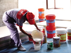 這種涂料是以107膠(其主要成分為聚乙烯醇縮甲醛)為基料 制成。 107耐擦洗內(nèi)墻涂料具有干燥快、涂層光潔美觀、防水、防污 等突出特點。適用于各種民用、公共建筑等的內(nèi)墻裝飾。