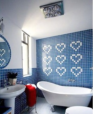 首先,整個浴室的色調(diào)要較淡,較冷,這樣,感覺上較為通風(fēng),視覺上能產(chǎn)生一種空間擴(kuò)大的效果。