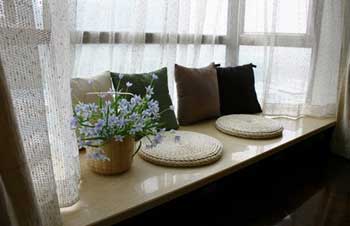 想被陽光照醒或享受星光的人士不妨試試。如果飄窗頗大,有兩三米長,一米寬的話,就可以把飄窗設(shè)計成一張小小的單人床!保留原有的大理石臺面,在采光玻璃(大多飄窗是三面采光)上掛上羅馬簾或普通垂簾,再在飄窗與臥室之間多加一道窗簾。不用的時候整個窗戶造型是浪漫的宮廷式垂簾,輕輕拉開,就是睡美人之床了。