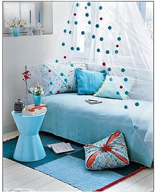 3、在白色調(diào)為主的房間中加些藍色,再現(xiàn)浪漫溫情