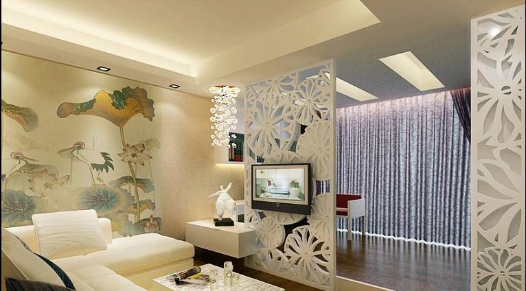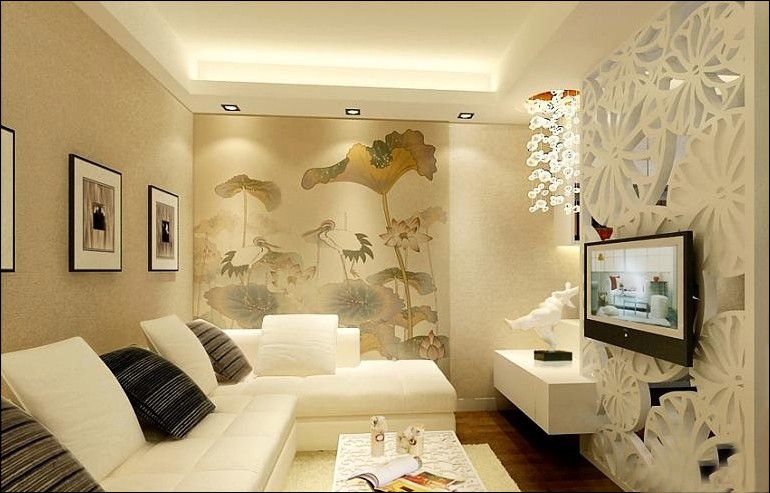 客廳的一側(cè)墻上大幅的落地荷花壁畫,是這個空間的亮點(diǎn)。顯得整個空間清幽雅致