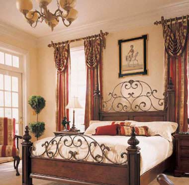 鐵藝與布藝的巧妙結(jié)合,會制造出意想不到的效果,綠色的家具本身就具有一種古樸之美,若配以亞麻的布藝,如靠墊、窗簾、床罩、臺布等,可以打造出一種即簡潔又充滿柔情的浪漫氛圍,讓女性的房間顯得更加柔情四溢。